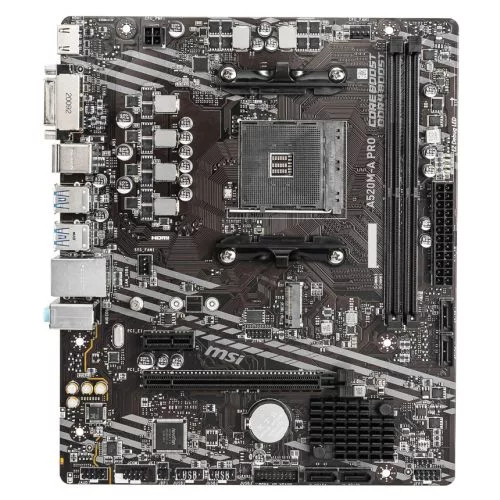 MSI A520M-A PRO, AMD A520, AM4, Micro ATX, 2 DDR4, DVI, HDMI, GB LAN, 1x M.2