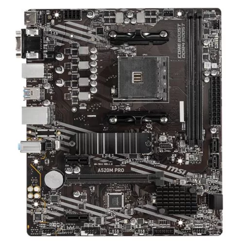MSI A520M PRO, AMD A520, AM4, Micro ATX, 2 DDR4, VGA, HDMI, DP, GB LAN, 1x M.2