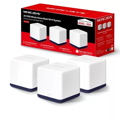 Mercusys Halo H50G (3-pack) AC1900 Whole Home Mesh Wi-Fi System, 600 Mbps at 2.4 GHz + 1300 Mbps at 5 GHz, 3x Internal Antennas, 3x Gigabit Ports per Unit, Halo App, One Unified Network, Seamless Roaming