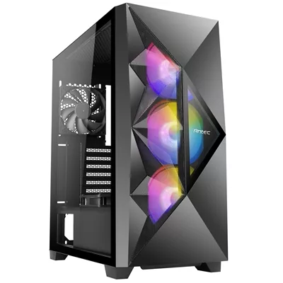 ANTEC DF800 FLUX Case, Gaming, Black, Mid Tower, 2 x USB 3.0, Tempered Glass Side Window Panel, Geometrical Mesh Design & Mirror Surface Front Panel, Addressable RGB LED Fans, Patented F-LUX Platform Cooling Solution, ATX, Micro ATX, Mini-ITX