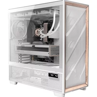 Antec Flux PRO Full Tower PC Case with Tempered Glass, White/Wood, 6 Pre-Installed Fans, USB Type-C, E-ATX/ATX/mATX/mITX Compatibility