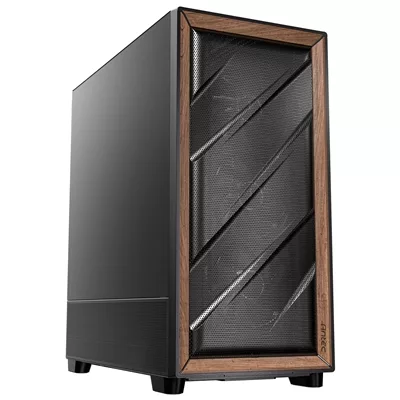 Antec Flux SE Full Tower PC Case with Solid Side Panel, Black/Wood, 5x Pre-Installed Fans, USB Type-C, E-ATX/ATX/mATX/mITX Compatibility