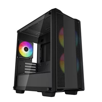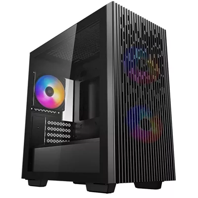 DeepCool CH360 Digital Gaming Case Black Mid Tower with Tempered Glass Side Window Panel, Advanced Cooling, USB 3.0/USB-C Ports, Pre-Installed Fans, Micro ATX/Mini-ITX