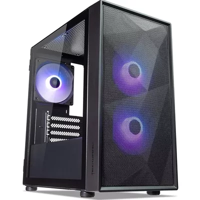 TecWare Forge M2 mATX PC Case, Compact High Airflow Mesh Front Panel, 3 x ARGB Fans Included, Hinged Tempered Glass Door, Supports 240mm Radiator, mATX/ITX, Black