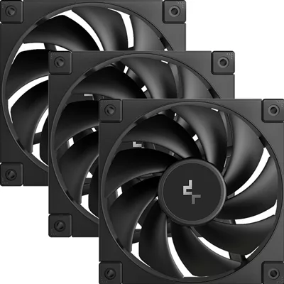 DeepCool FD12 120mm Case Fan 3-Pack, PWM Control, High Airflow, Low Noise, Hydro Bearing, Black, Anti-Vibration Pads, 4-Pin Connector