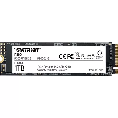 Patriot P300 (P300P1TBM28) 1TB NVMe SSD, M.2 Interface, PCIe Gen3, 2280, Read 2100MB/s, Write 1650MB/s, 3 Year Warranty