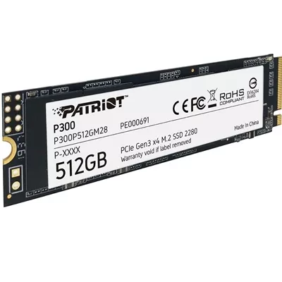 Patriot P300 (P300P512GM28) 512GB NVMe SSD, M.2 Interface, PCIe Gen3, 2280, Read 1700MB/s, Write 1100MB/s, 3 Year Warranty