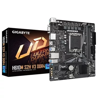 Gigabyte H610M S2H V3 DDR4 Ultra Durable Intel 1700 Socket Motherboard, Micro-ATX, 2x DDR4 Slots, 1x M.2 Socket, GbE LAN, 1x D-Sub / 2x DisplayPorts / 1x HDMI Port