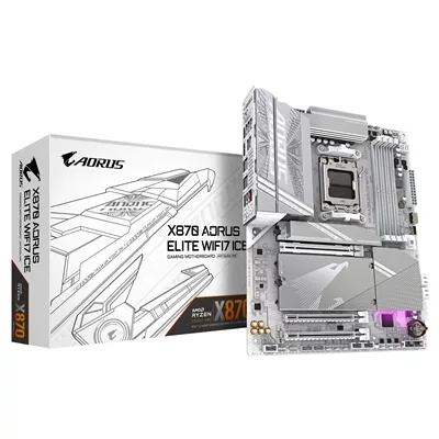 Gigabyte X870 AORUS ELITE WIFI7 ICE AMD AM5 Socket Motherboard, ATX, 4x DDR5 Slots, 4x M.2 Sockets, Fitted I/O Shield, 2.5GbE LAN, Wi-Fi 7, 1x HDMI Port / 2x USB-C (USB4)