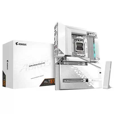 Gigabyte X870 AORUS STEALTH ICE AMD AM5 Socket Motherboard, ATX, 4x DDR5 Slots, 3x M.2 Socket, 5GbE LAN, 1x HDMI Port / 2x USB-C (USB4)