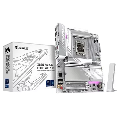 Gigabyte Z890 AORUS ELITE WIFI7 ICE Intel 1851 Socket Motherboard, ATX, 4x DDR5 Slots, 4x M.2 Sockets, Fitted I/O Shield, 2.5GbE LAN, Wi-Fi 7, 1x DisplayPort / 1x USB-C (USB4)