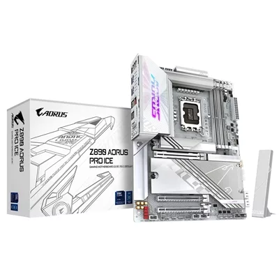 Gigabyte Z890 AORUS PRO ICE Intel 1851 Socket Motherboard, ATX, 4x DDR5 Slots, 5x M.2 Sockets, Fitted I/O Shield, 5GbE LAN, Wi-Fi 7, 2x USB-C (USB4)