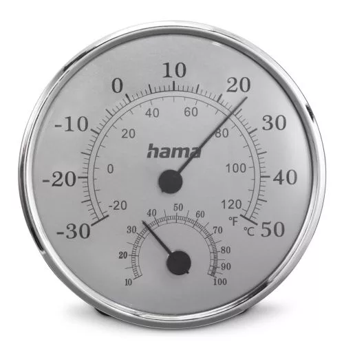 Hama (Saipan) Analogue Thermo/Hygrometer – Thermometer, Hygrometer, Comfort Indicator, Stainless Steel, Silver/Grey