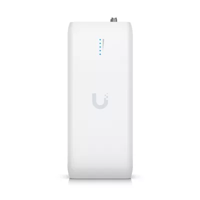 5 GHz wireless bridge with PoE output that connects at 5+ km distances or seamlessly uplinks to UniFi WiFi.