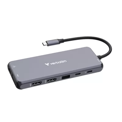 The Verbatim USB-C Pro 9-Port Multiport Hub has a versatile nine ports including different generations of both USB-C and USB-A for maximum device compatibility. Immerse yourself in 4K video output through the HDMI port, benefit from the speeds of a wired internet connection with the gigabit ethernet port and make the transfer of photos and data quick and easy with the SD and microSD memory card slots. The hub features two USB-C ports and a USB-A port with speeds of up to 10Gb/s, and two USB-A ports with speeds of up to 5Gb/s for the ultimate device connectivity.